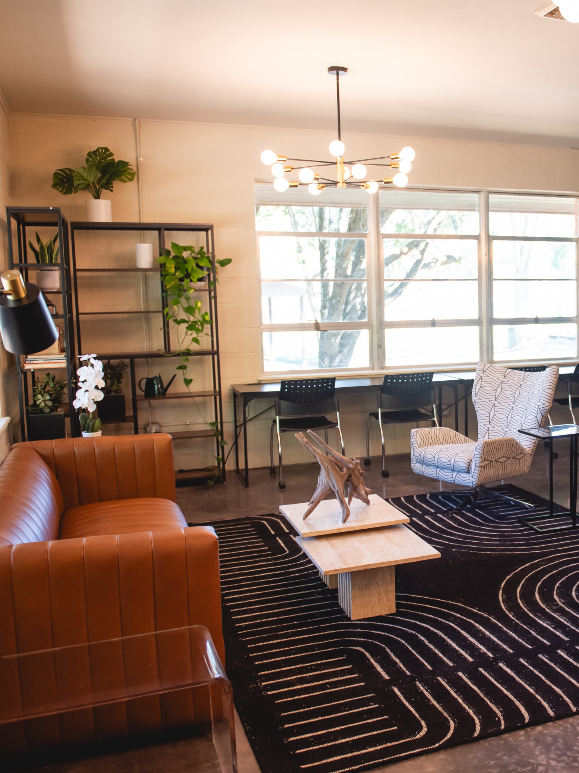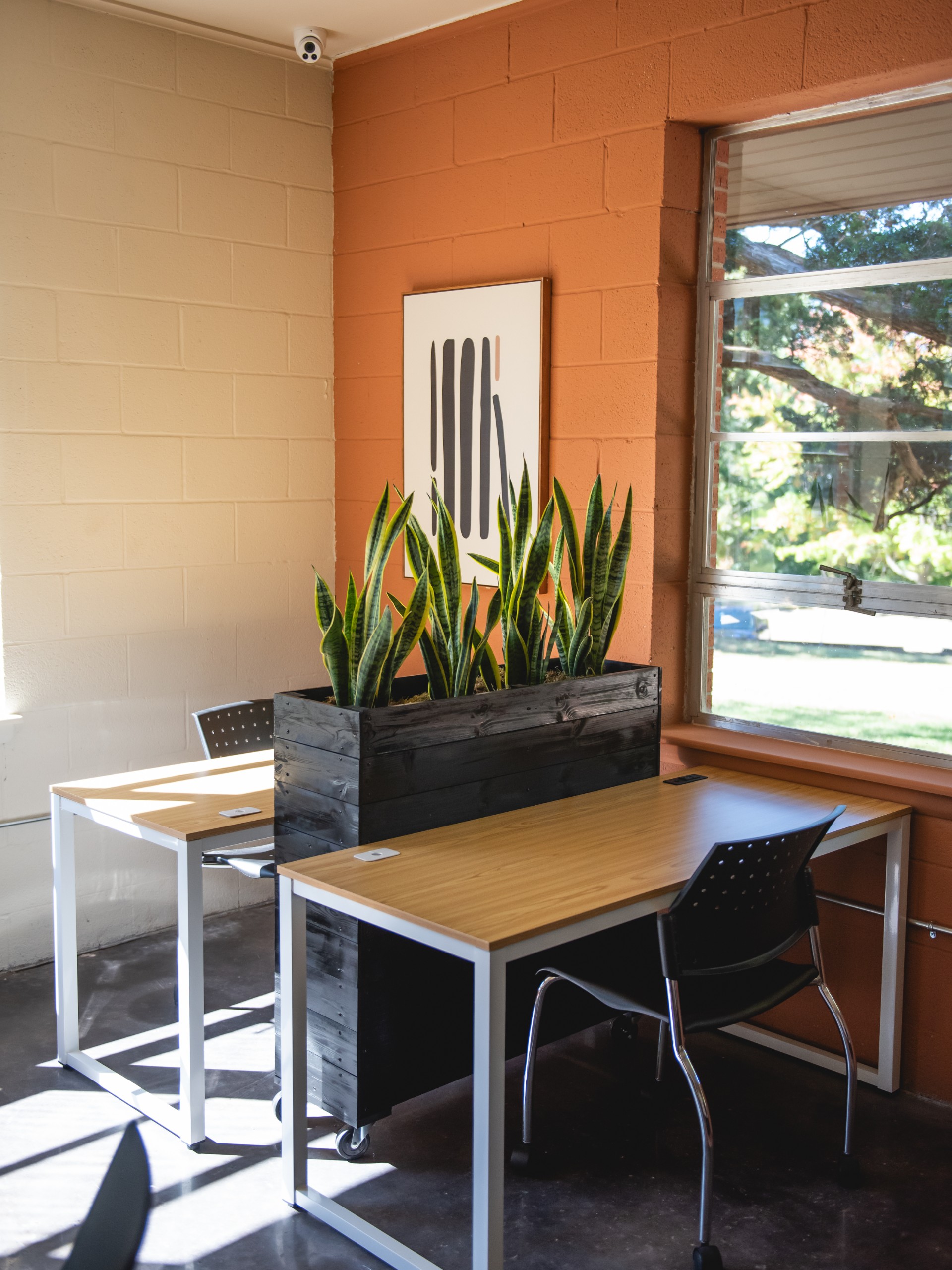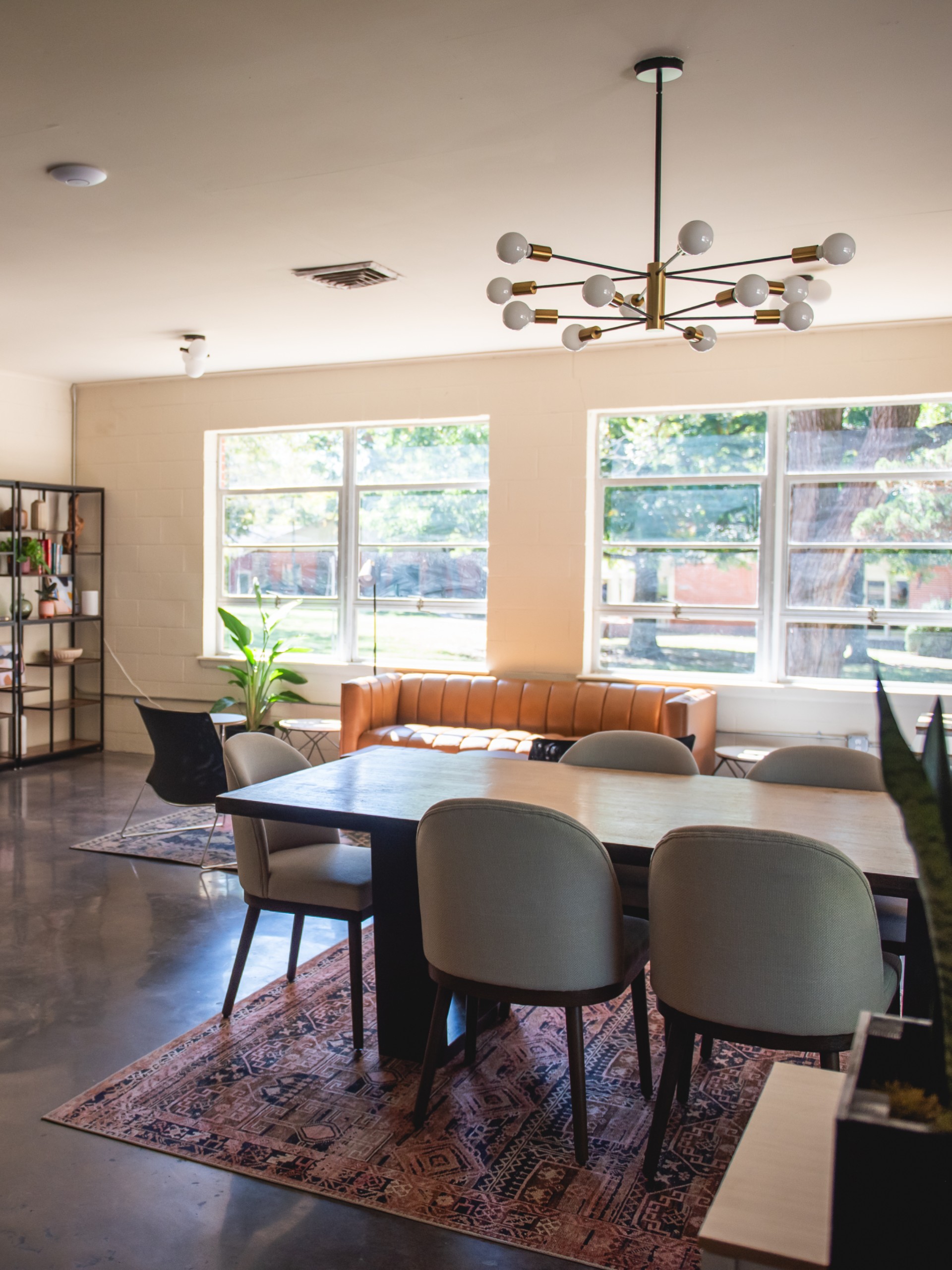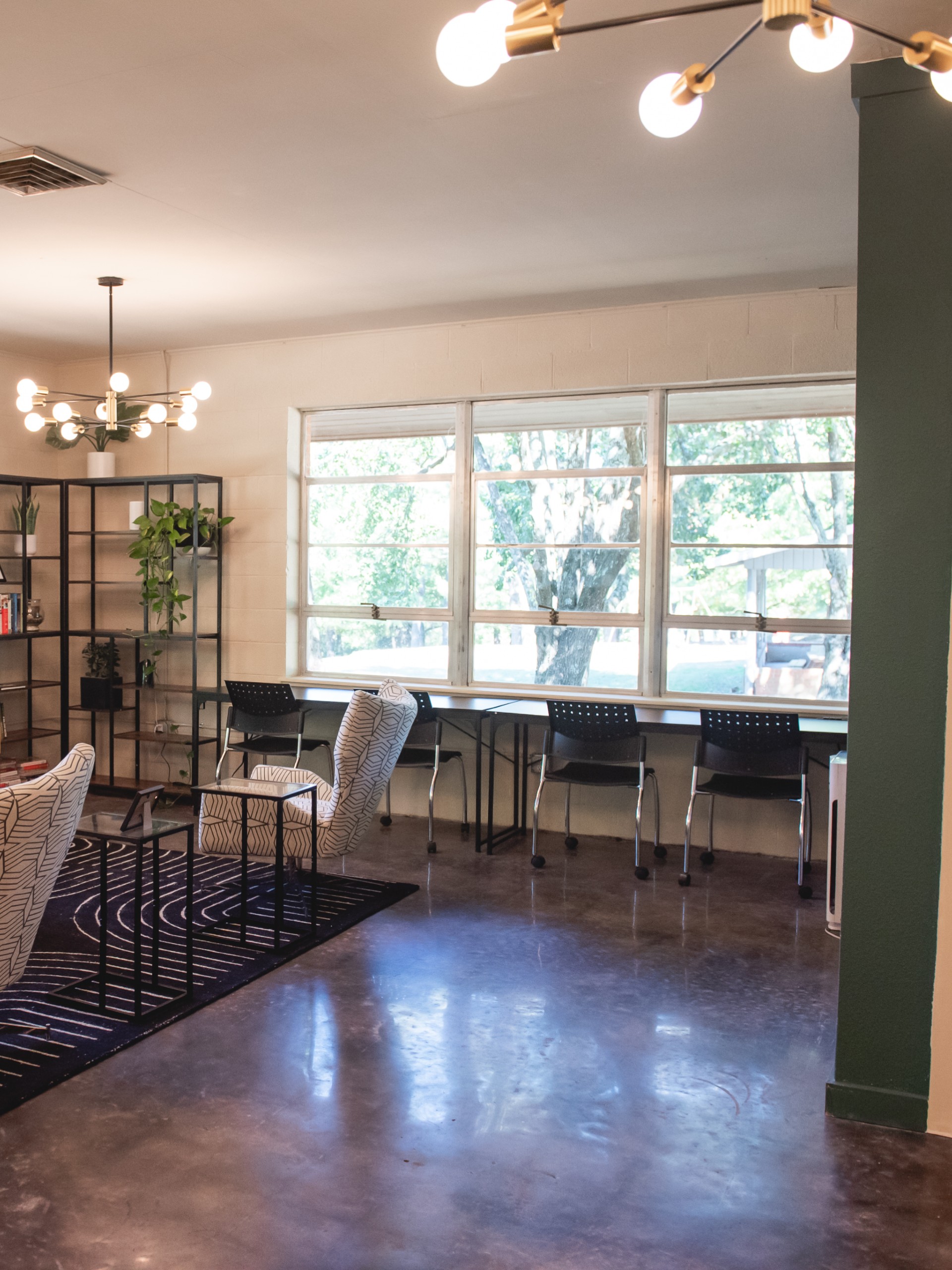 Two flexible community spaces include desks, lounge areas, and collaborative spaces including a conference room. Coffee and wifi also included.